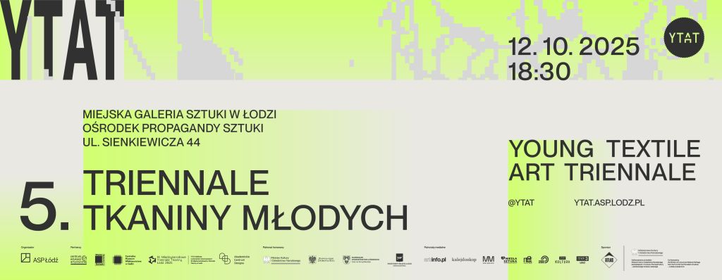 W dniach 12 października – 31 grudnia 2025 roku w Miejskiej Galerii Sztuki w Łodzi odbędzie się 5. Triennale Tkaniny Młodych YTAT – Łódź 2025 – międzynarodowe wydarzenie artystyczne organizowane przez Akademię Sztuk Pięknych im. Władysława Strzemińskiego w Łodzi. Zainicjowane w 2012 roku triennale stanowi wyjątkową platformę wymiany doświadczeń i dialogu między młodymi artystami, pedagogami oraz środowiskami twórczymi z całego świata. W centrum wydarzenia znajdują się współczesne praktyki artystyczne w medium tkaniny.