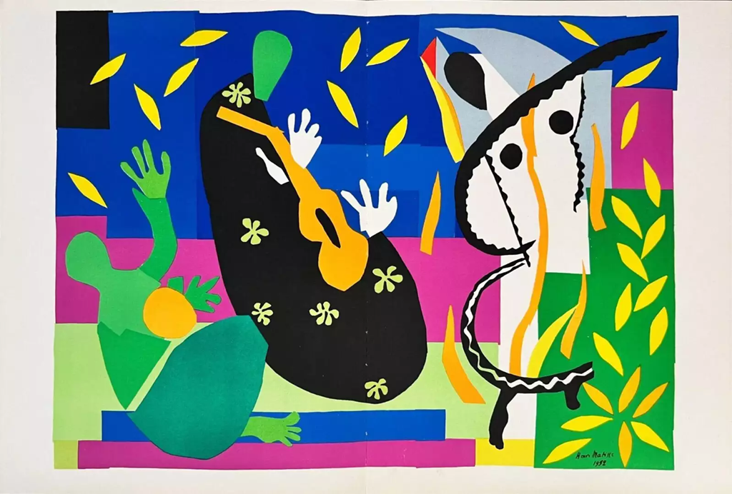 Henri Matisse (1869 – 1954) – Francuski malarz, grafik, rzeźbiarz. Studiował w Académie Julian u akademickiego malarza Williama-Adolphe’a Bouguereau’a oraz w École des beaux-arts w Paryżu u symbolisty Gustave’a Moreau. Istotny wpływ na jego twórczość miało także spotkanie z australijskim impresjonistą Johnem Russellem. Jeden z twórców i głównych przedstawicieli grupy Fowistów, artystów, którzy w latach 1905-1908 tworzyli obrazy cechujące się intensywną kolorystyką, syntetycznością form i odejściem od naturalizmu. Prezentowane na wystawie „Radość formy” grafiki powstały na podstawie wycinanek, które Matisse tworzył w późnym okresie swojej twórczości, w latach ’40 i ’50, kiedy związane z chorobą ograniczenia ruchowe uniemożliwiły mu pracę malarską i rzeźbiarską.